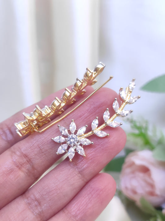 Swirl Diamond-Style Ear Cuff – Gold & Silver Tone