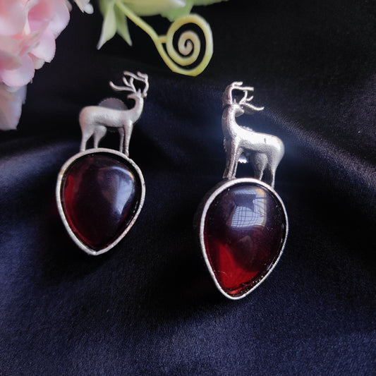 Red deer monalisa stone earring