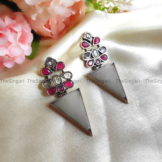 Designer Monalisa Silver Replica Dangler Earrings in Maroon & White