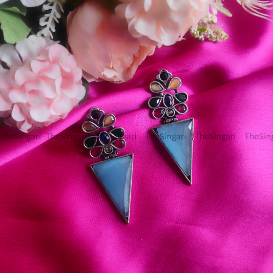 Designer Monalisa Silver Replica Dangler Earrings in Blue