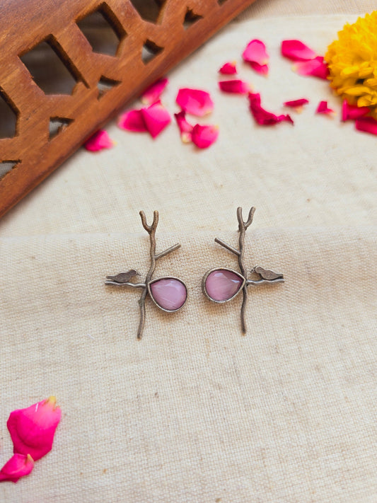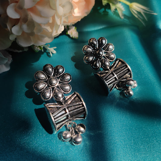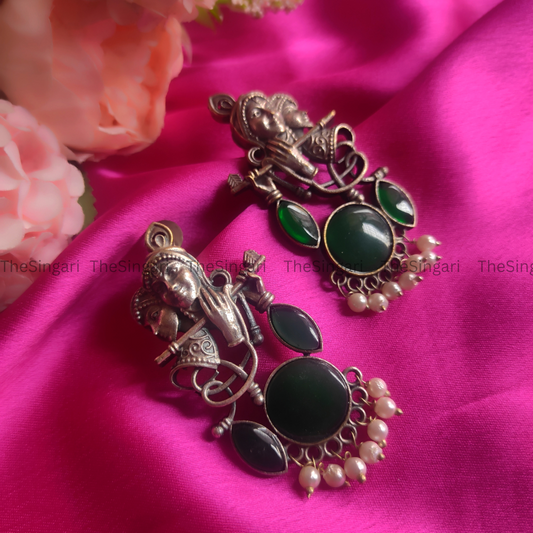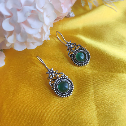 Colourful Peacock Silver Oxidised Earrings in Yellow