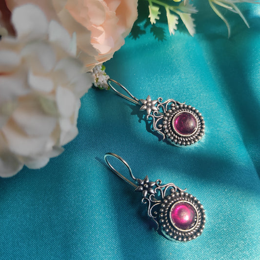 Designer Monalisa Silver Replica Dangler Earrings in Maroon & White