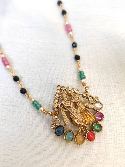 Navaratna Krishna Pendant Black Beads Chain | Traditional Gold Finish Necklace