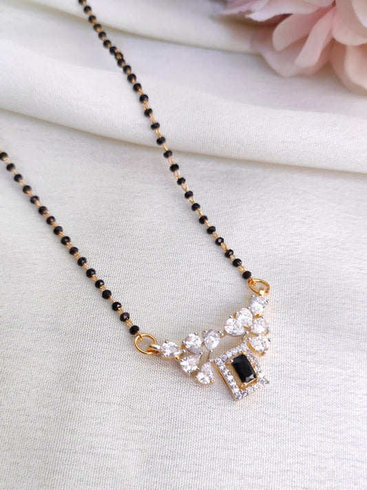 Classic Black Stone AD Pendant Black Bead Chain – Minimal Mangalsutra Style