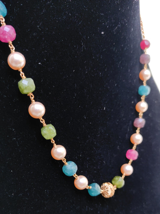 Handcrafted Multi Stone Beads & Pearl Chain Necklace for Women