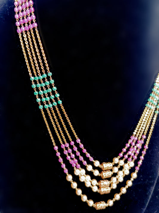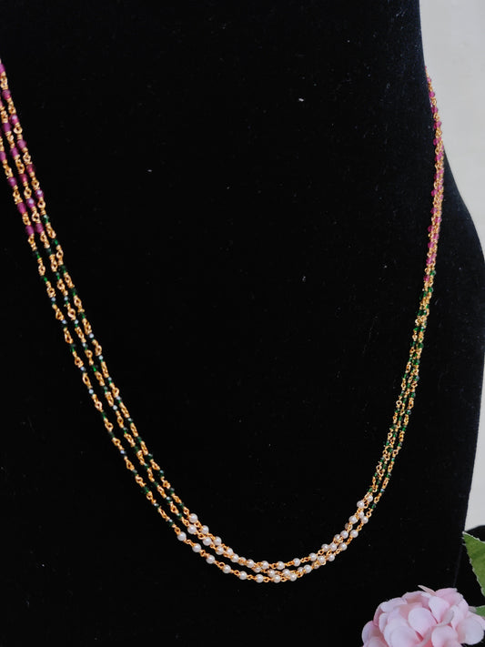 Multicolor Beads Chain with Pearl Finish – Lightweight Traditional Daily Wear Necklace