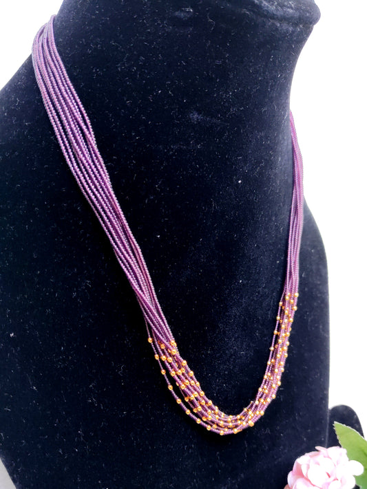 Purple Beads Multi-Layer Chain with Gold Tone Accents – Elegant Imitation Necklace