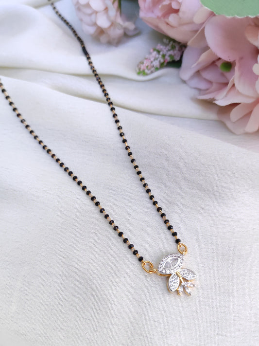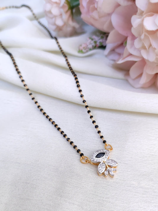 Leaf Design Black Stone AD Pendant Black Bead Chain – Delicate Everyday Wear