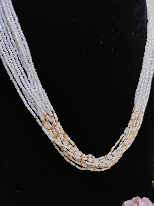 White Seed Beads Multi-Layer Chain – Elegant Daily Wear Imitation Necklace
