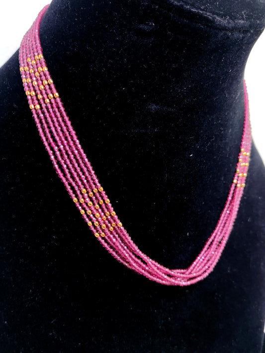 Pink Crystal Beads Multi-Strand Chain – Stylish Party & Festive Wear Necklace