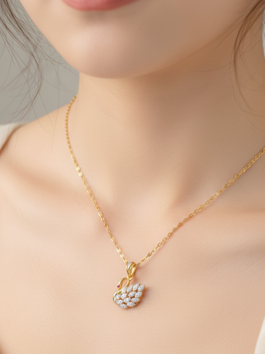 Elegant Swan CZ Pendant Chain – One Gram Gold Polish | Daily Wear & Gifting Necklace
