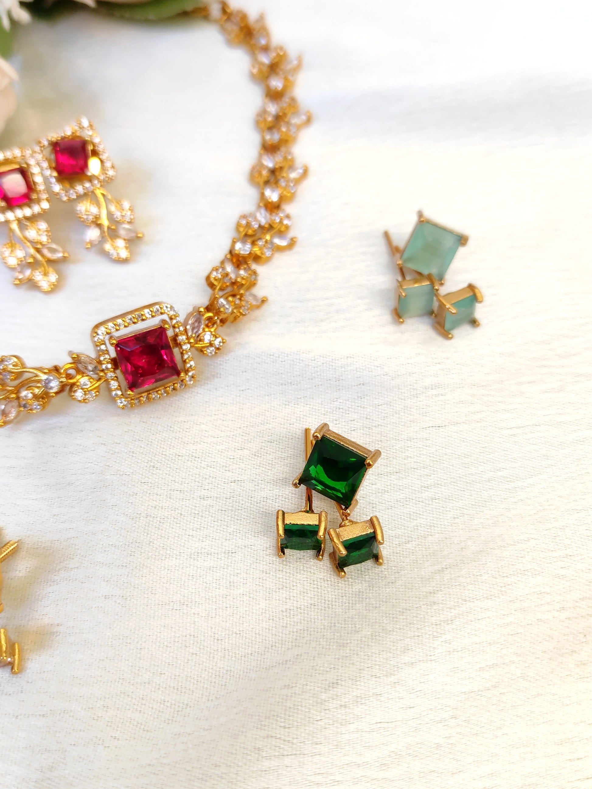 Colourful necklace with Interchangeable 5-Coloured cubic zirconia stones.( Red, Green, Mint, baby pink, white)