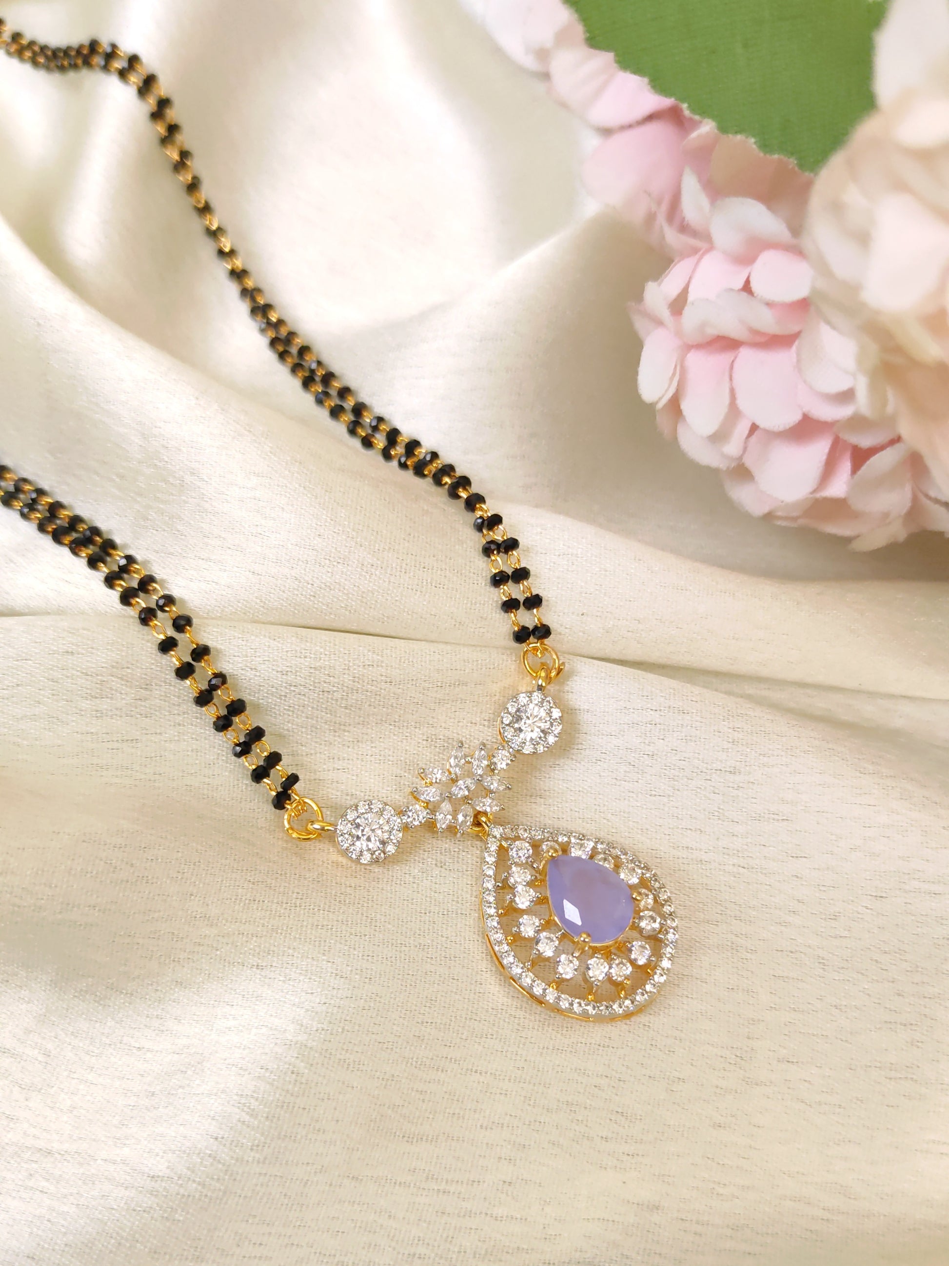 Designer Double Line Black Bead Mangalsutra with Lavender Pendant – Lightweight Traditional Mangalsutra Chain for Women